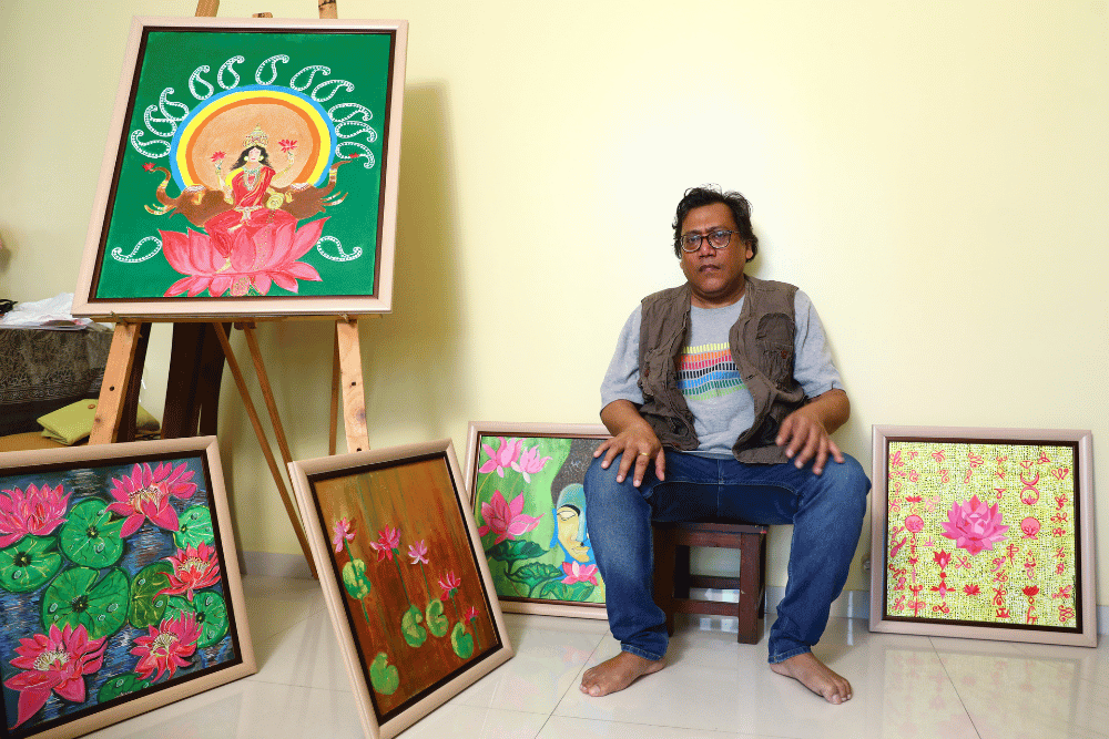 Over the years, Gautam has created more than 100 works and has exhibited in both India and abroad, including two group shows in Paris and a celebrated solo exhibition at the Kamal Nayan Bajaj Gallery in Mumbai. His works are held in private collections among friends, family, and admirers who continue to encourage his journey.