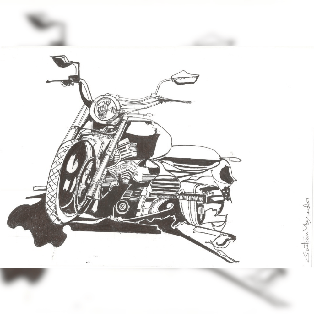 The Bike Series – 029 by Gautam Mazumdar is a black-and-white hand-painted artwork that celebrates the universal joy of motorcycling. Created using ball pen and pencil on 100 GSM paper, this piece highlights the inclusive culture of riders, emphasizing how motorcycles bring people together across religion, gender, language, race, and skin color. Ideal for collectors who love contemporary mixed-media art and travel-inspired themes.