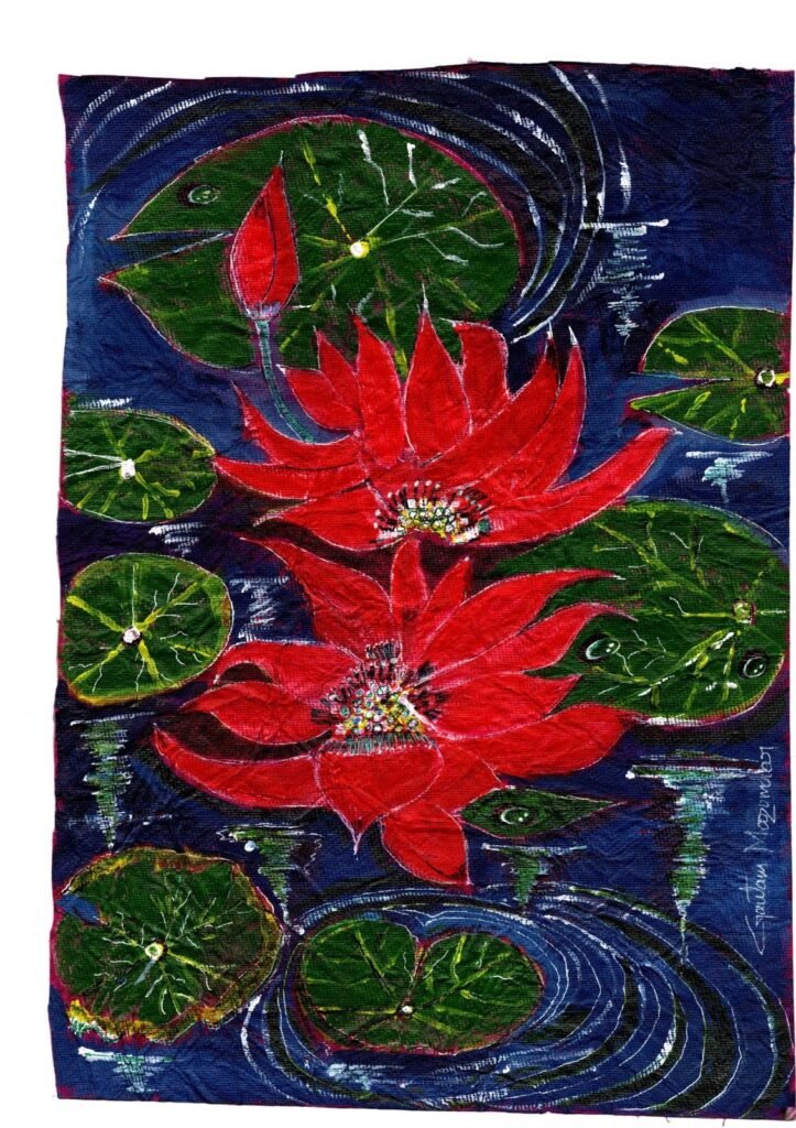 In conclusion, \”Two Lotus\” by Gautam Mazumdar is a remarkable piece of art that not only showcases the artist\’s talent but also invites viewers to contemplate the profound symbolism of the lotus flower. Through its delicate brushstrokes, vibrant colors, and tranquil backdrop, the painting encourages us to find harmony, resilience, and inner peace in our own lives, drawing inspiration from the beauty of nature.